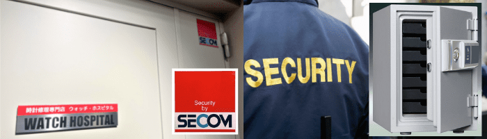 お客様からお預かりした大切な時計をお守りするために、弊社ではセコムの防犯・防火システムを導入しております。